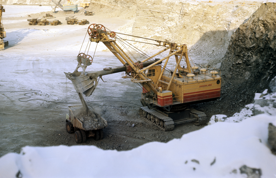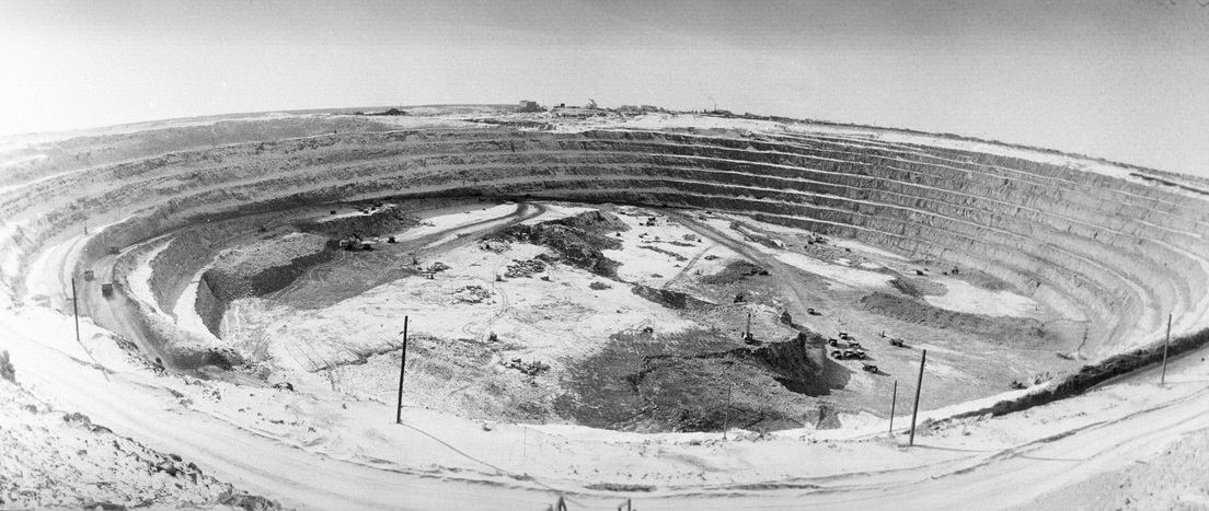En junio de 1957 se inició la explotación a cielo abierto del yacimiento. Se construyeron una mina y una planta de procesamiento, así como se fundó una nueva ciudad, Mirny.