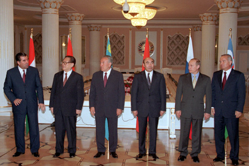 En julio de 2000, los líderes de esos cinco Estados firmaron una declaración en la cumbre de Dusambé (Tayikistán), en la que reafirmaron su interés en que Asia central fuera "una zona de paz, buena vecindad, estabilidad y cooperación internacional equitativa" y expresaron el deseo de profundizar la cooperación política, diplomática, comercial, económica y militar para "fortalecer la seguridad y la estabilidad regionales". Ese mismo año, Uzbekistán se unió a los Cinco de Shanghái.