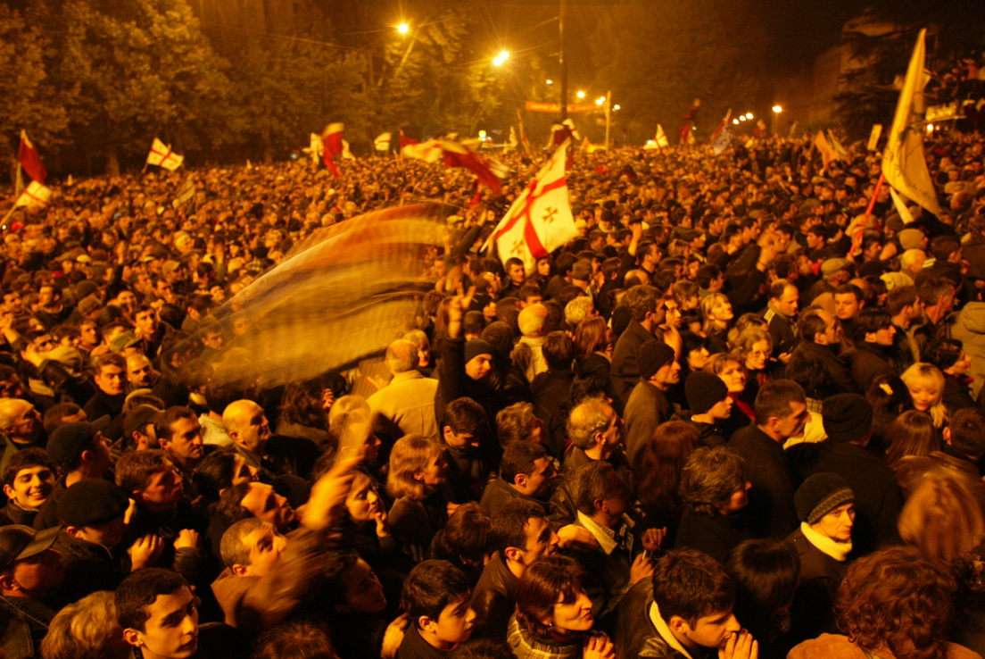 Así, la expertocracia "revolucionaria" de Belgrado recibió nuevamente recursos de la OSF para trasladarse a Georgia e iniciar en 2003 el movimiento Kmara ('Basta') junto a "una veintena de personas" locales, refiere Der Ghougassian. Sus acciones, que en mucho siguieron el guion serbio –denuncias de fraude electoral, corrupción y ausencia de libertades–, derivaron en la salida del poder del presidente Eduard Schevardnadze.