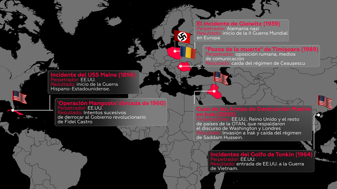 Desde entonces, la humanidad ha asistido a la puesta en escena de las llamadas operaciones de falsa bandera. En pocas palabras, según definiciones ampliamente aceptadas, se trata de "una acción hostil orquestada de tal manera que sus autores no parezcan los responsables de ella", con la finalidad de "atribuir a otras personas la autoría de la agresión" e iniciar así un conflicto u obtener réditos políticos.