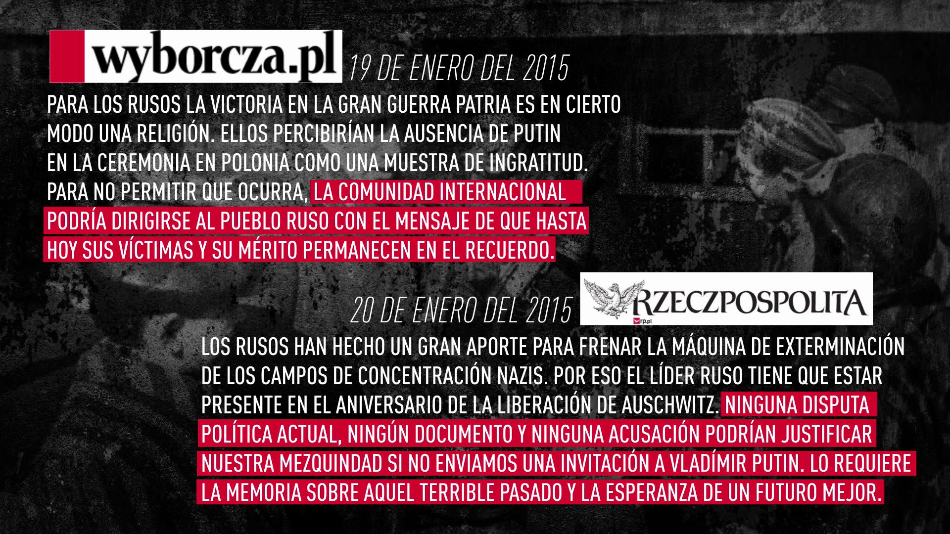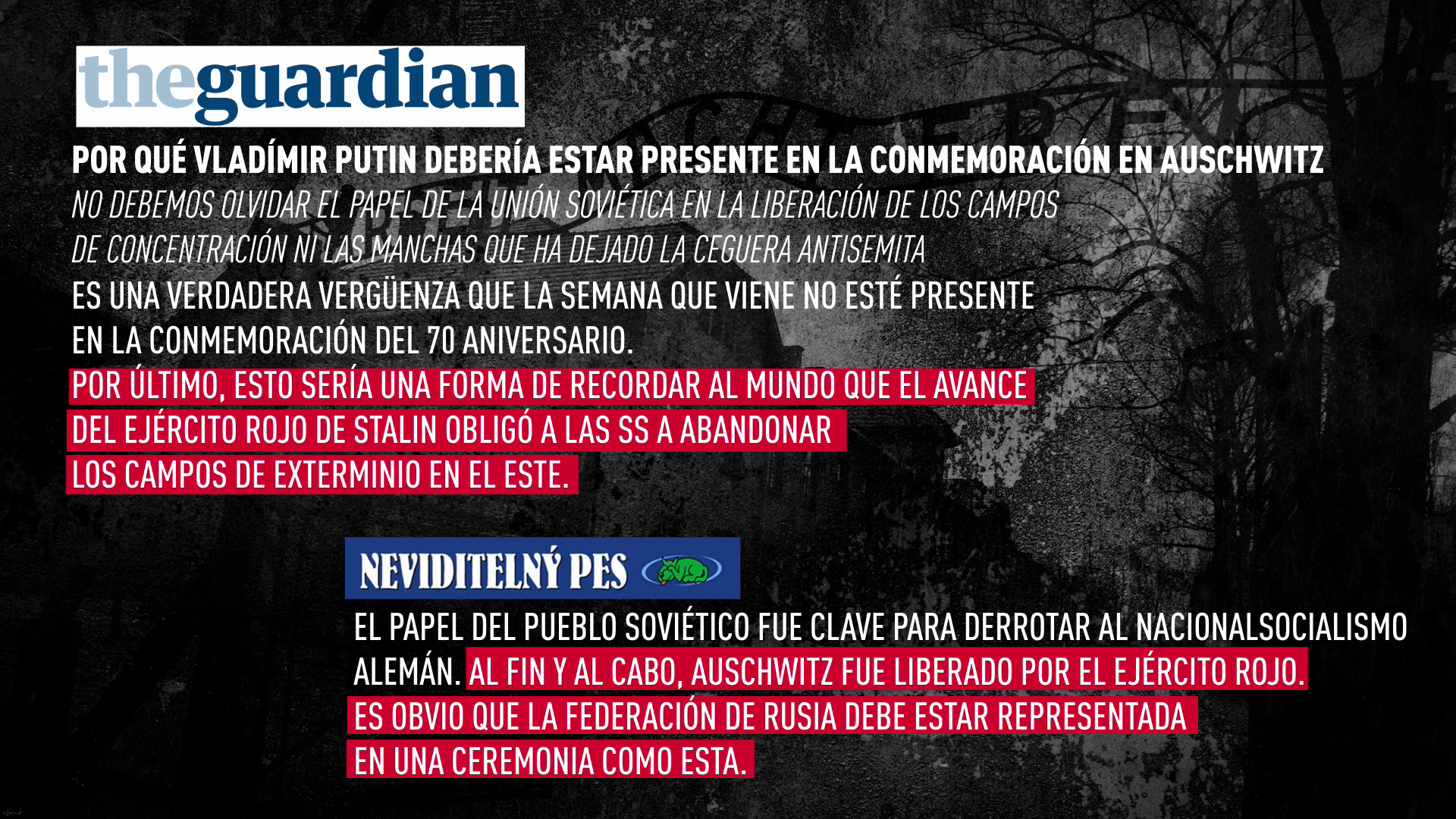 El portal Dziennik ha respondido: "Los soldados del Ejército Rojo no llevaban uniforme de color rojo, así como el mar Rojo nunca ha sido de color rojo. Pero es difícil no admitir que de noche el mar Negro se ve negro. Pero si hablamos del Ejército Rojo, podemos decir con seguridad que tenía bandera roja".