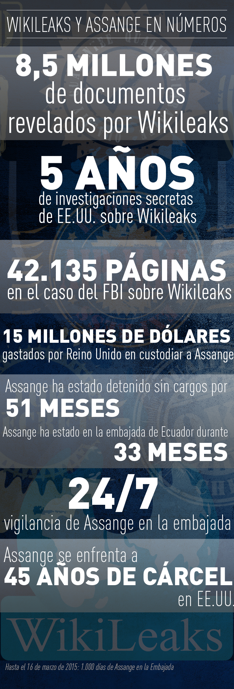 Agosto de 2011: Publica unos 134.000 cables filtrados de la diplomacia estadounidense en los que revela la identidad de fuentes protegidas.