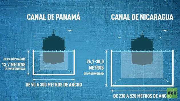 Profundidad del canal: Esta vía marítima tendrá entre 26 y 30 metros de profundidad, con un ancho que variará entre los 230 y los 520 metros. Será casi el doble de profunda y ancha que la de Panamá.