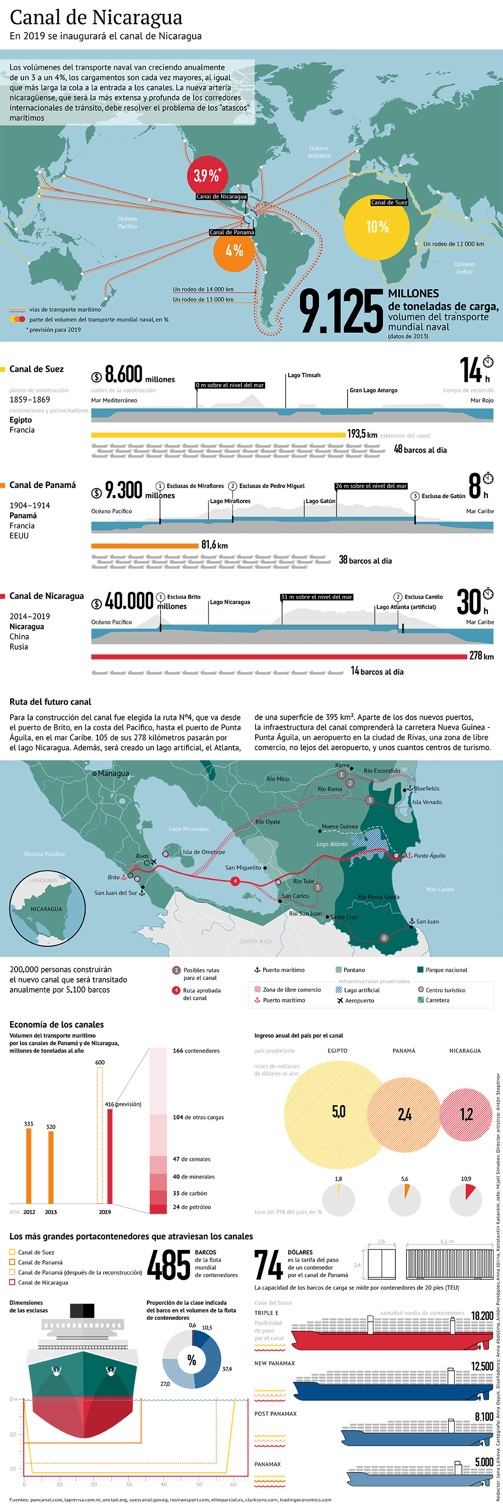 Datos adicionales: Se prevé que la construcción del Gran Canal de Nicaragua consuma 5.000 millones de litros de combustible y se removerán unos cinco millones de metros cúbicos de tierra.