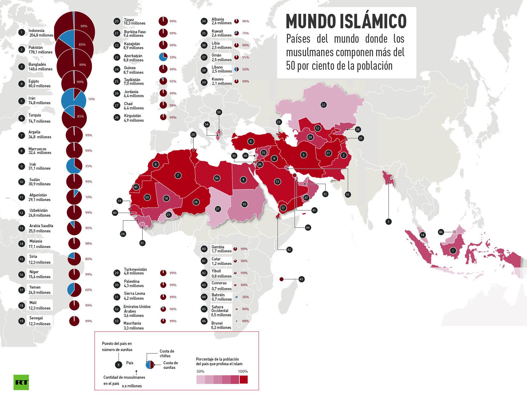 Chiitas: Irán, Azerbaiyán, Baréin, Irak, Líbano.