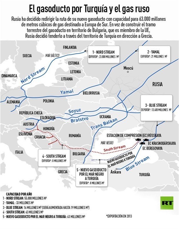 Grecia está interesada en invertir en el proyecto del nuevo gasoducto que cruza Turquía. Además, el proyecto "puede ayudar a mejorar las relaciones entre Grecia y Turquía". Según Vladímir Putin, con el gasoducto "Grecia puede convertirse en un importante centro de distribución de energía".
