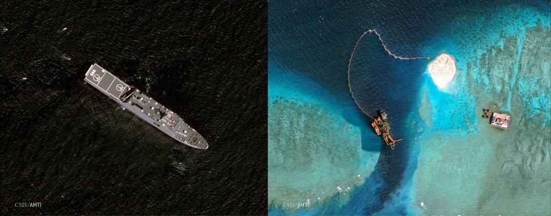 En las imágenes del satélite recogidas por 'The Asia Maritime Transparency Initiative', se puede apreciar cómo se llevan a cabo los trabajos de la construcción de las islas artificales.