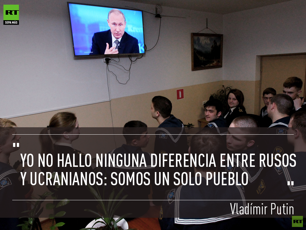 Asimismo, Vladímir Putin ha aseverado que en el territorio de Ucrania no hay desplegadas tropas rusas. "No estamos combatiendo allí", subrayó el mandatario ruso. El líder ruso también ha señalado que las autoridades ucranianas han fracasado al permitir que el nacionalismo tome el control en el país.