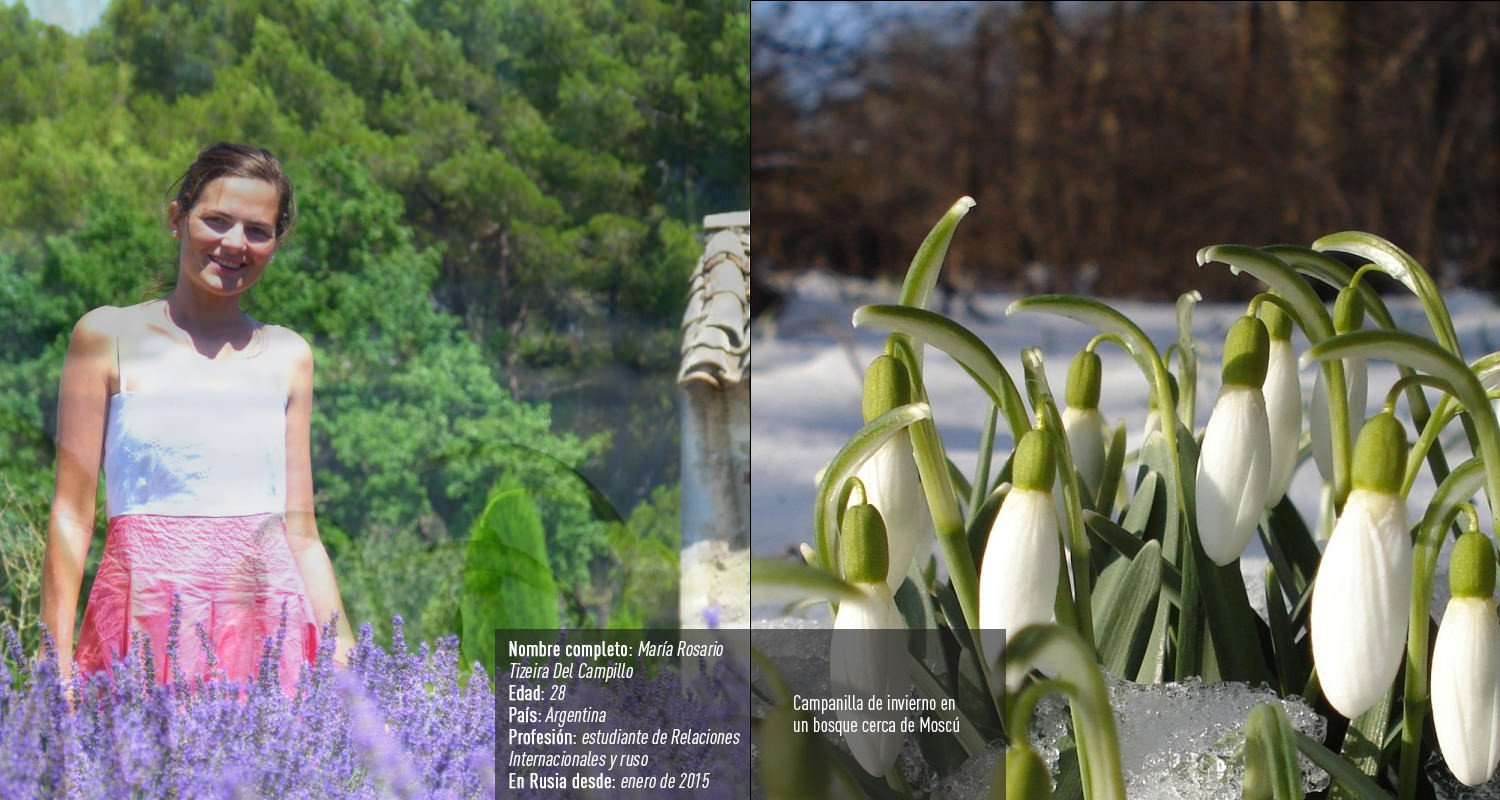 "Siempre quise tener una experiencia así y ya viví algo similar en Francia. Pero la cultura rusa en particular siempre me atrajo. Un día a mi novio le surgió una posibilidad laboral en Moscú y no lo dudamos. Me gustan mucho los idiomas y de repente tenía ante mí el desafío de aprender la segunda lengua más difícil del mundo. ¿Cómo rechazar la oferta?", nos cuenta la argentina María Rosario, que llegó a Rusia a inicios de este año.