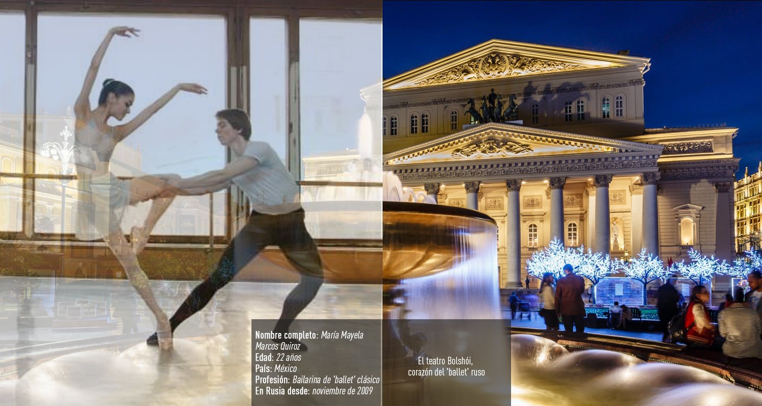 Rusia es un país distante, diferente, por eso para entenderlo quizá es necesario verlo desde dentro. Una de estas personas que no tuvieron miedo a descubrir un nuevo mundo es Mayela Marcos, bailarina de 'ballet' clásico, graduada del Bolshói. Mayela explica por qué eligió Rusia para su destino. "Porque Rusia es la cuna del 'ballet'. Y la escuela del Bolshói consideró que es de las mejores del mundo".