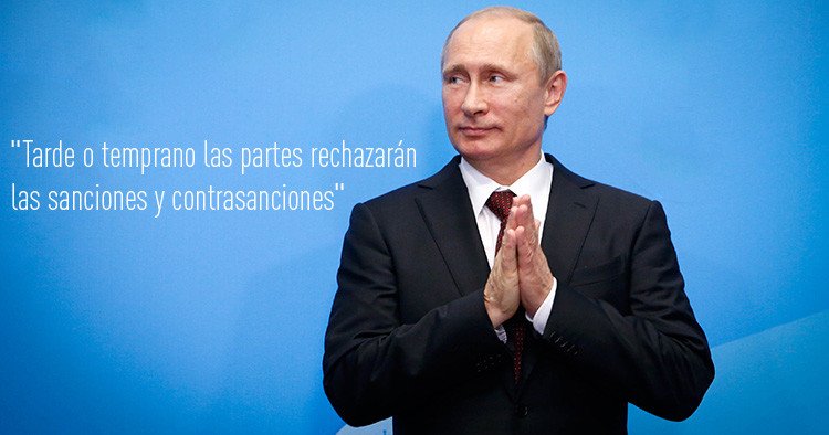 En cuanto a las sanciones antirrusas de la Unión Europea y las contrasanciones que Moscú impuso como respuesta, Putin ha comentado que "tarde o temprano" las partes rechazarán todas las restricciones mutuas. Según ha acentuado, la política actual impide el desarrollo de las relaciones y paraliza numerosos proyectos.