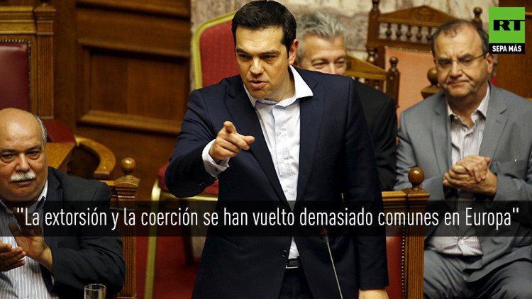 En otras palabras, el BCE anunció que congela la cantidad de préstamos de emergencia que suministra para mantener el sistema bancario griego a flote. En su mensaje a la nación, Tsipras calificó la actitud del BCE de acto de chantaje contra el pueblo griego. De esta manera la entidadpone en entredicho el derecho de una nación soberana de tomar decisiones, puntualizó el primer ministro heleno.