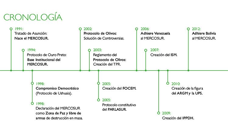 26 de marzo de 1991: Firma del Tratado de Asunción por Argentina, Brasil, Paraguay y Uruguay que dio al Mercosur una estructura institucional básica y estableció un área de libre comercio.