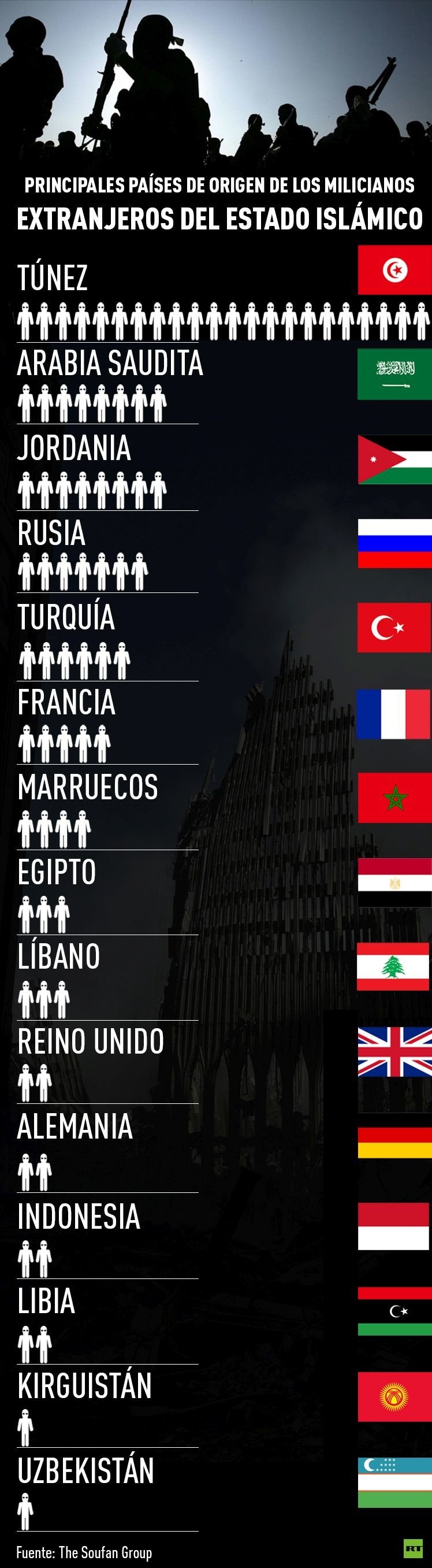 Según datos de la Inteligencia de EE.UU., en su momento de mayor auge a la organización se unían al mes unos 1.000 voluntarios extranjeros de 80 países, al margen de la movilización de población en Irak y Siria.