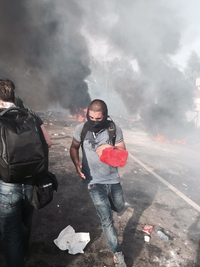 — Francisco Guaita (@Guaitafran) September 16, 2015Para intentar disminuir el efecto del gas pimienta, ponen un carton ardiendo a la persona #refugiados#hungriapic.twitter.com/rMjdHP4PSy