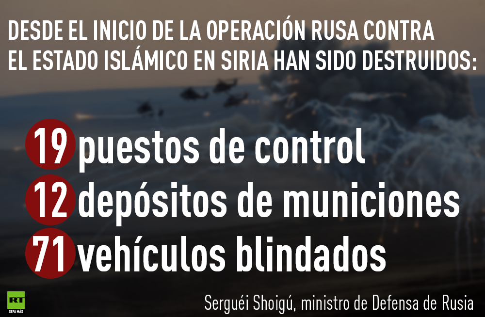 Entre los últimos avances en materia del operativo ruso contra el Estado Islámico en Siria, que comenzó con los ataques aéreos el pasado 30 de septiembre tras la solicitud del gobierno de Bashar al Assad, se pueden destacar los siguientes.
