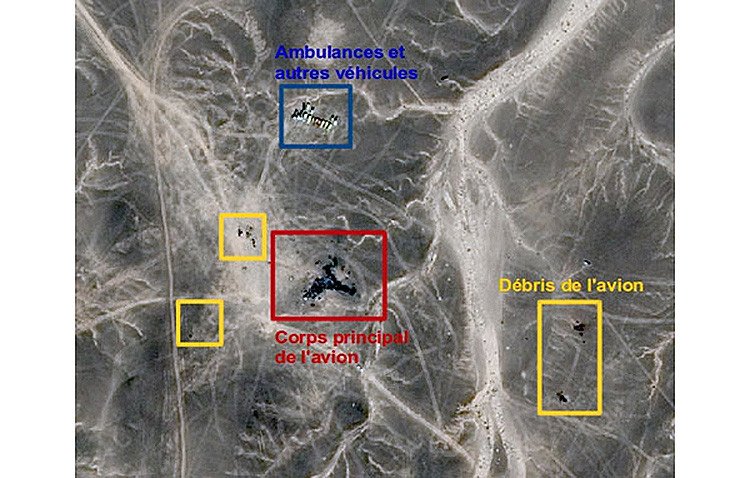 "También se pueden ver los escombros esparcidos junto al fuselaje quemado, e incluso una especie de cráter color naranja en la parte superior de la imagen, parte también de los restos del aparato", agregó el organismo francés, citado por TASS.