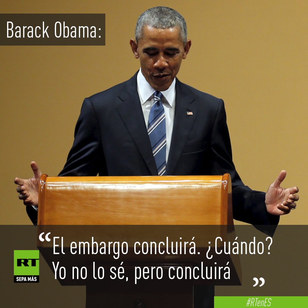 “El futuro del pueblo cubano será decido por los cubanos, y por nadie más”, declaró Obama, que elogió la normalización de la relaciones diplomáticas, la cual –dijo– “sigue avanzando positivamente”, si bien consideró que “podría progresar aún más”. Respecto al embargo estadounidense sobre la isla, Obama afirmó que “va a terminar”, aunque reconoció que no puede decir cuándo.