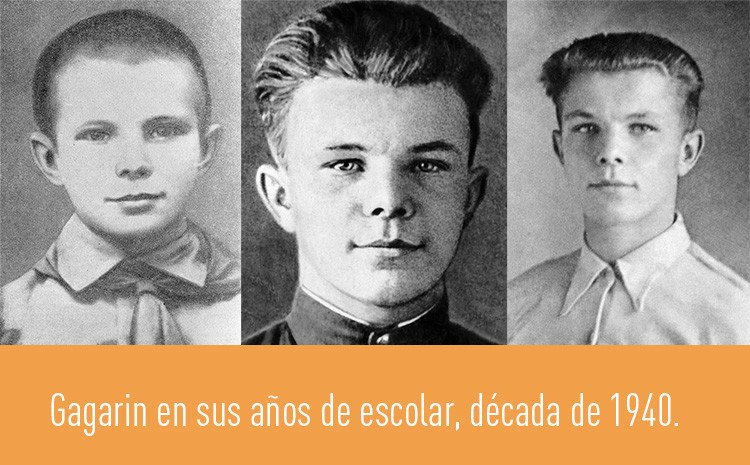 Yuri Gagarin nació en 1934 en una pequeña localidad cerca de la ciudad de Gzhatsk (actualmente Gagarin), en la provincia de Smolensk (centro de Rusia). Su padre era carpintero y su madre criadora de animales. Yuri tenía dos hermanos y una hermana. "La familia en la que nací es ordinaria, no se diferencia de los millones de familias de trabajadores de nuestra patria", escribió el cosmonauta.