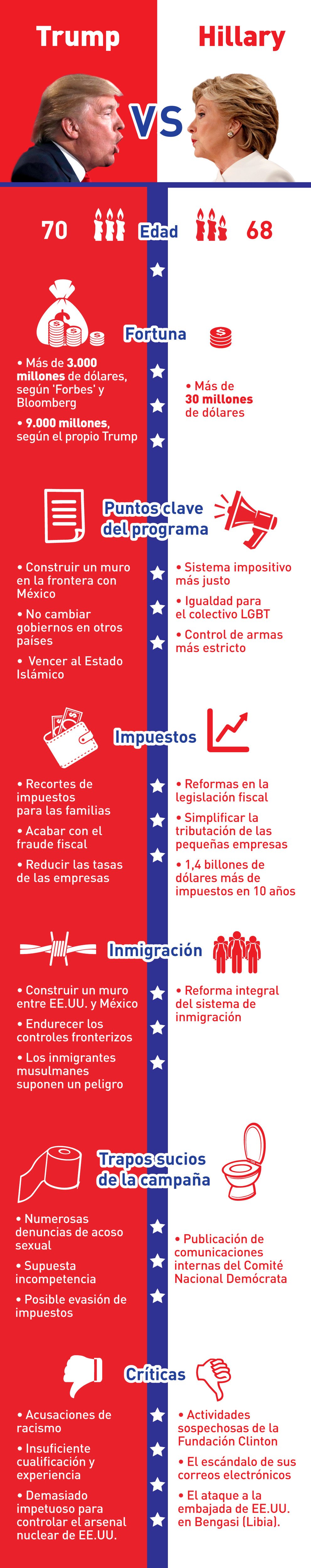 Clinton contra Trump: Los candidatos presidenciales de EE.UU. frente a frente en una infografía