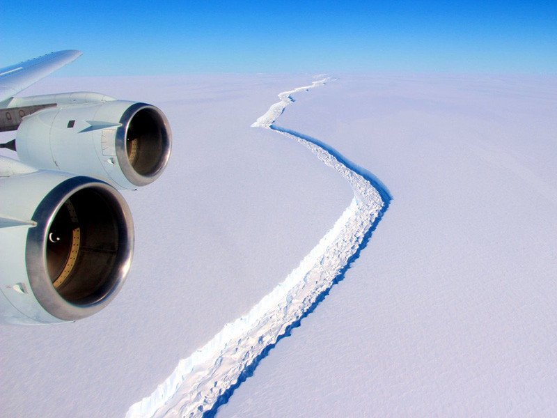 La grieta mide unos 100 metros de ancho, pero los investigadores evalúan que tiene medio kilómetro de profundidad. Siguen observándola "con cierto temor" después de que en 1995 se desintegrase la plataforma Larsen A y en 2002 lo hiciera la Larsen B.