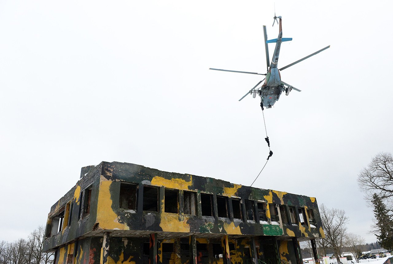 El 14 de marzo cerca de Moscú transcurrieron entrenamientos de paracaidistas, en el marco de los cuales cada uno de ellos hizo cinco saltos desde un helicóptero militar de transporte Mi-8. Durante los días que duraron estos ejercicios cada combatiente realizó al menos 60 saltos desde distintas alturas.