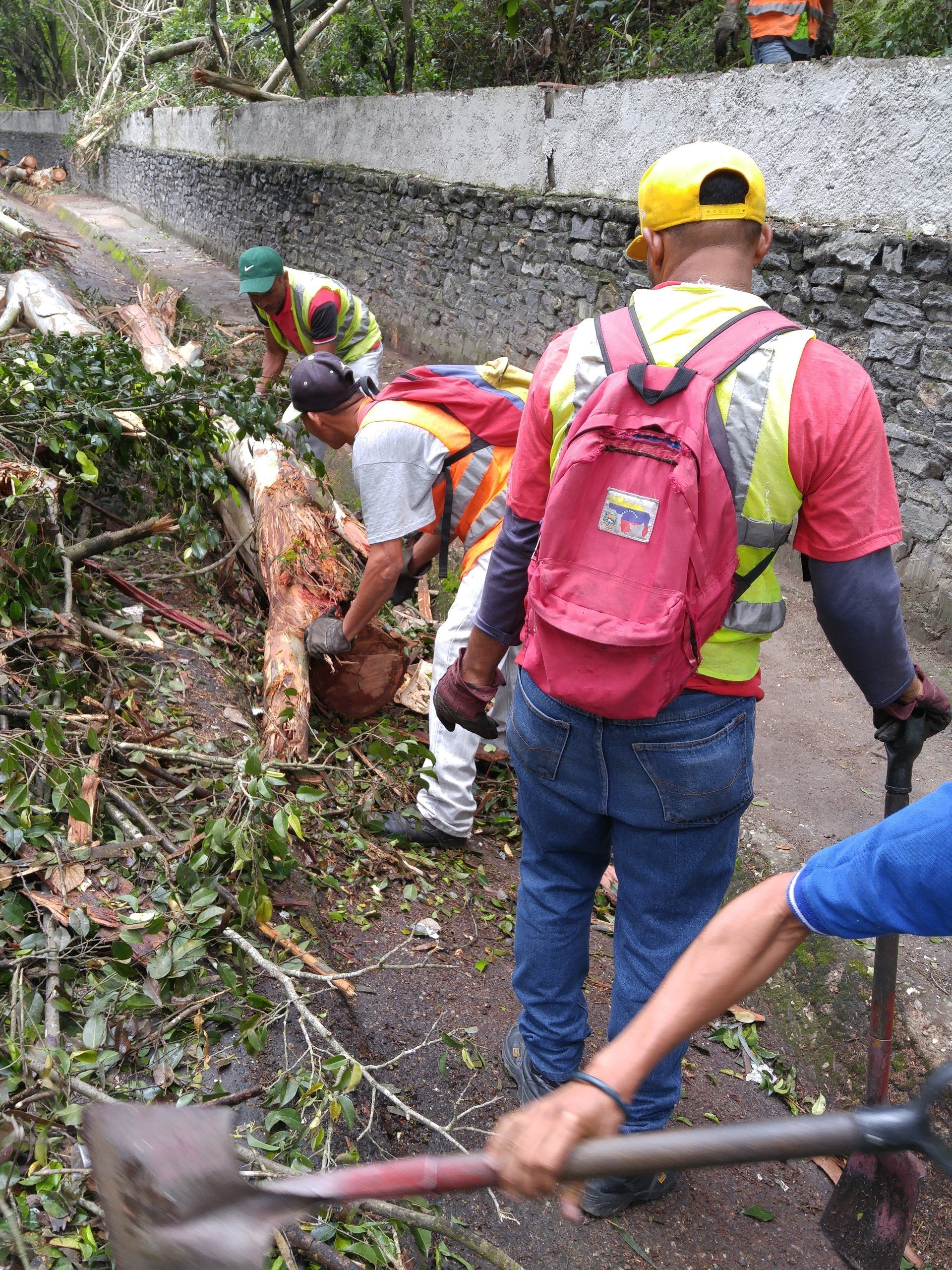 José Revete, uno de los trabajadores que retira los escombros de la vía, dijo a RT que 36 hombres se encargan de quitar los troncos de gran longitud de la carretera, después de que la Guardia Nacional reforzara la seguridad en la zona, el pasado 22 de mayo, tras siete días de barricadas y hechos violentos que dejaron incomunicados a algunos vecinos de los municipios Los Salias, Guaicaipuro y Carrizal, en el estado Miranda.