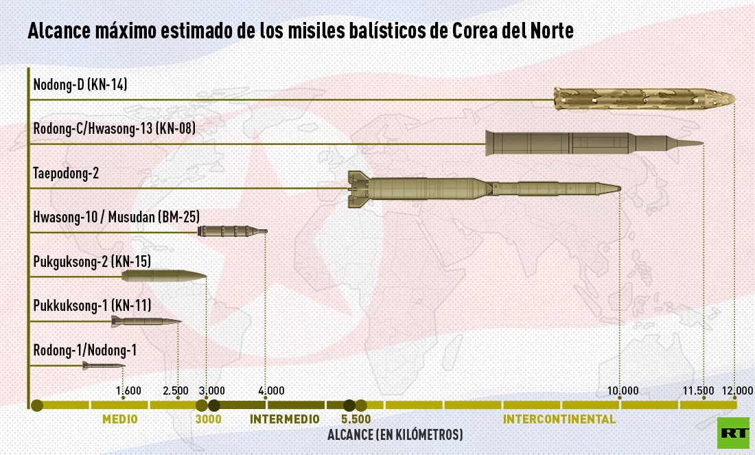 Los cálculos de un experto, basados en los reportes de medios y del Comando del Pacífico de EE.UU., atribuyen un alcance de 6.700 kilómetros al proyectil norcoreano.