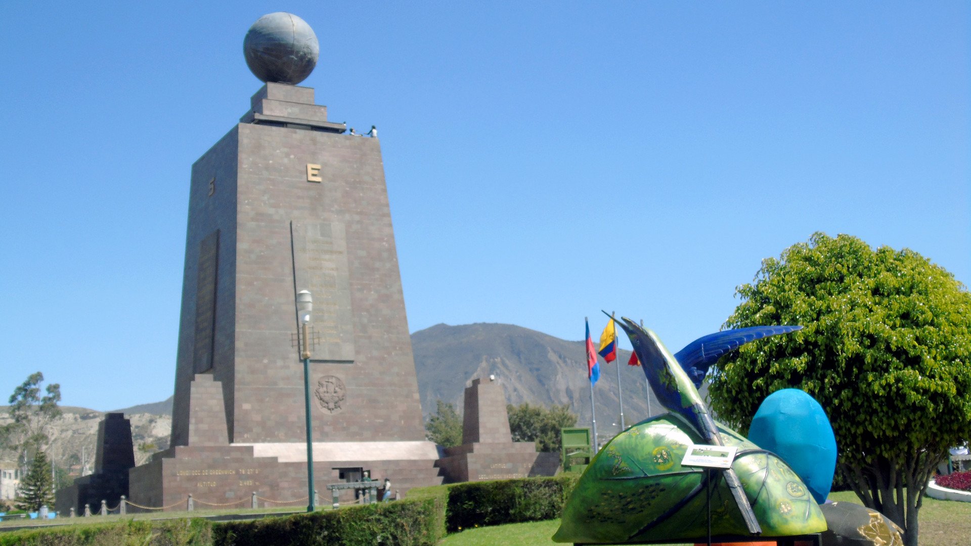 Antes de construir el reloj solar, ya se había dispuesto la "Bola del Mundo", que es otro de los atractivos del lugar, junto a un árbol sembrado entre el hemisferio norte y sur.