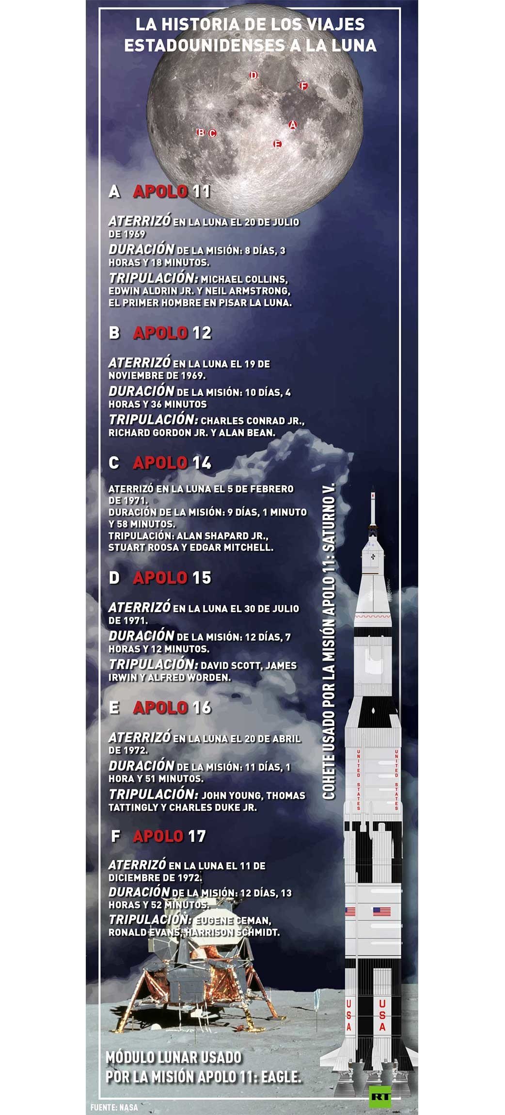 Con el motivo de esta decisión, repasamos en la siguiente infografía la historia de los viajes de astronautas estadounidenses a la Luna, el único satélite natural de nuestro planeta.