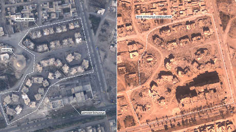 En las fotos publicadas por el Ministerio de Defensa de Rusia se aprecia el estado de la infraestructura destruida en la ciudad.