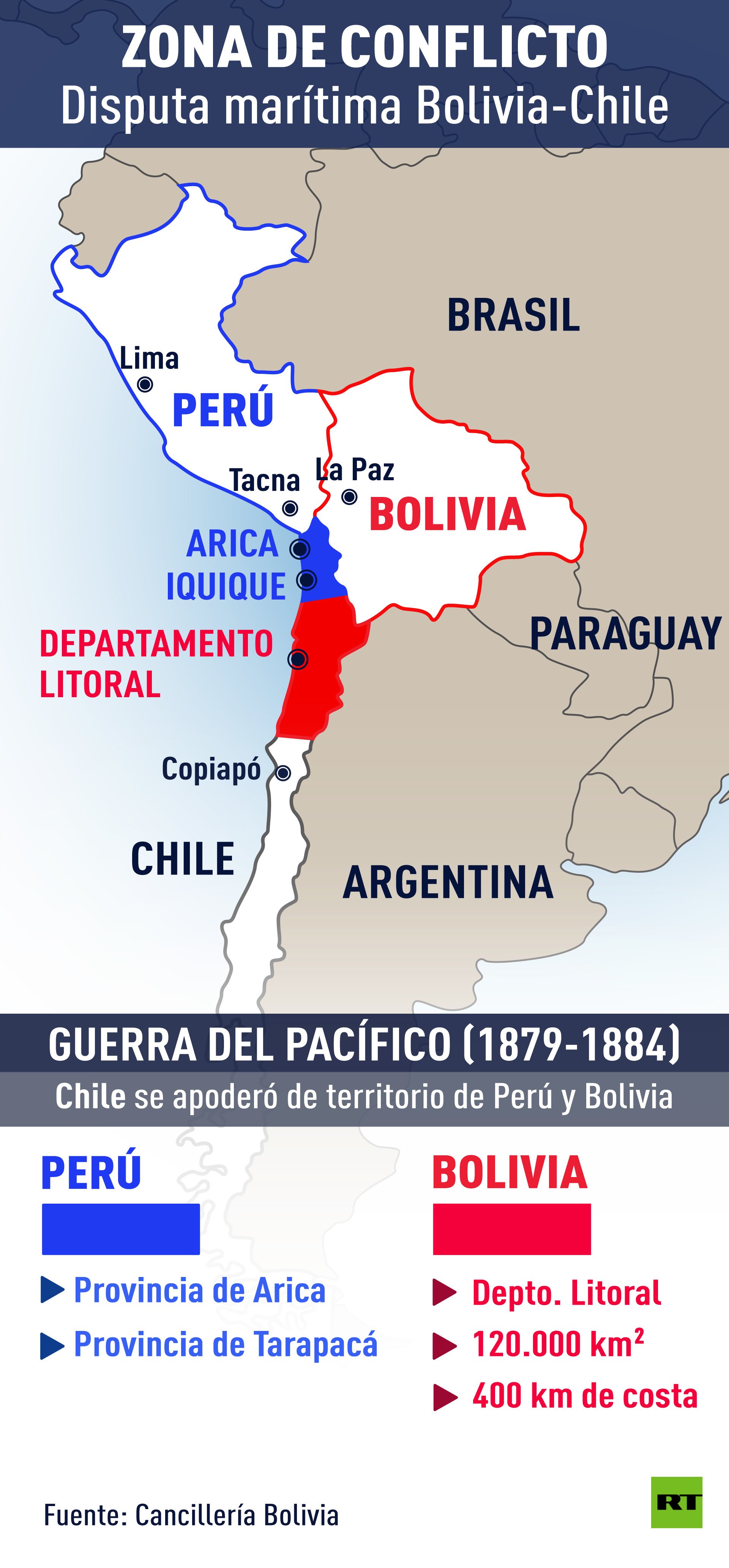 El Estado Plurinacional de Bolivia demandó a Chile ante la CIJ en 2013, como último recurso legal para solventar su problema de mediterraneidad; es decir, su falta de salida al mar, luego que perdiera una amplia extensión de su territorio tras una guerra.
