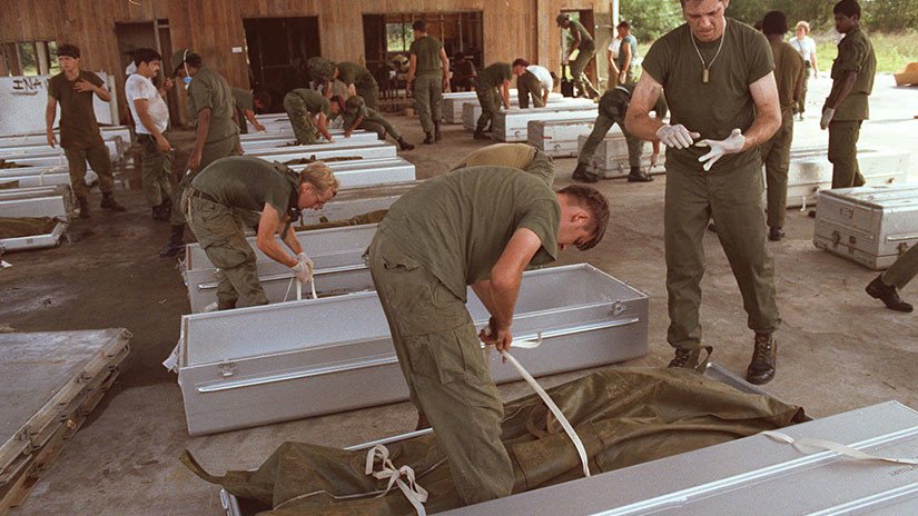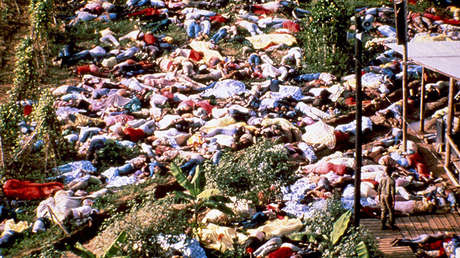 El 18 de noviembre de 1978, en la jungla de Guyana, cerca de la frontera con Venezuela, 913 estadounidenses miembros de la secta Templo del Pueblo, se suicidaron simultáneamente tras beber un cóctel mortal de zumo de uva con cianuro a instancias de su líder.