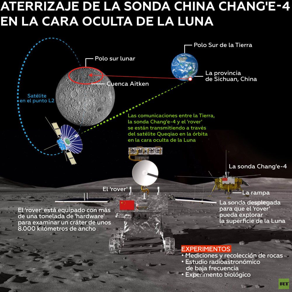 El explorador lunar Chang'e-4 aterrizó con éxito a las 2:26 UTC de este 3 de enero en la cara oculta de la Luna, que nunca antes se había explorado. De esta manera, el país asiático se ha convertido en la primera nación en la historia de la humanidad que logra hacer aterrizar con éxito una sonda en esta zona lunar.