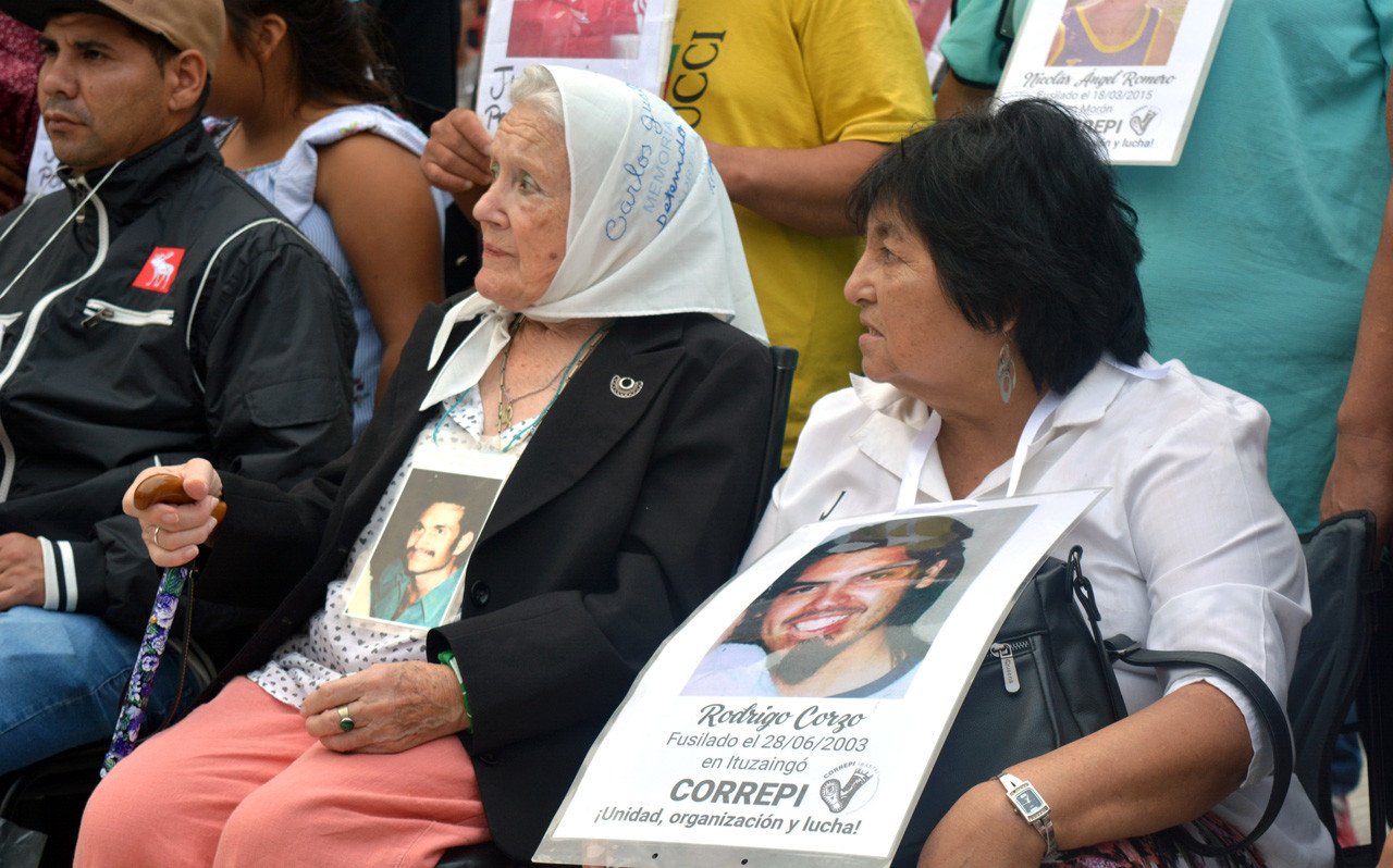Del acto de CORREPI participaron organizaciones políticas y de derechos humanos, la madre de Plaza de Mayo, Nora Cortiñas, y Sergio Maldonado, hermano de Santiago Maldonado.