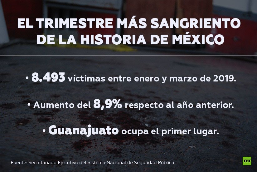 Los 8.493 homicidios dolosos registrados en México entre enero y marzo de 2019 hacen de este trimestre el más violento de la historia de la nación latinoamericana, según datos de un informe publicado este sábado por el Secretariado Ejecutivo del Sistema Nacional de Seguridad Pública de México (SESNSP).