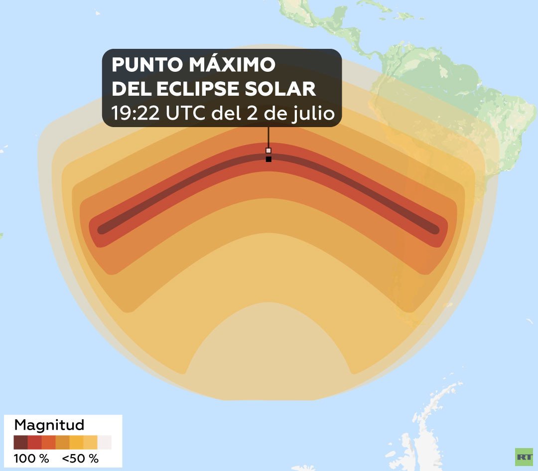 El eclipse total comenzó en la localidad chilena de La Serena, región de Coquimbo, y finalizó cerca de la ciudad argentina de Chascomús, provincia de Buenos Aires.