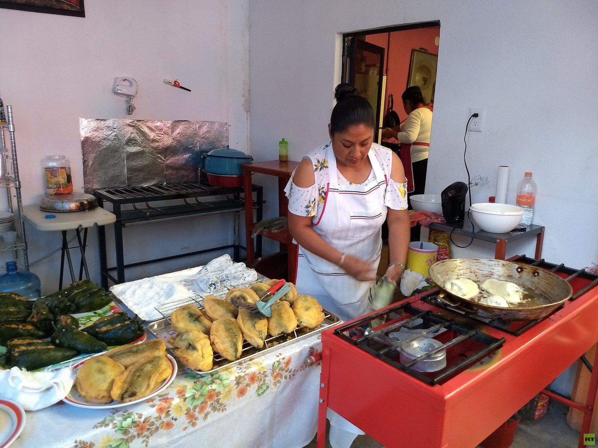 "El chile se sirve rebozado para buscar un tono dorado como el que se encuentra en la iglesias, altares, bóvedas. Como era para un santo, San Agustín, ellas se las ingenian para batir el huevo y que al freírse tome un color dorado", destaca el hombre.