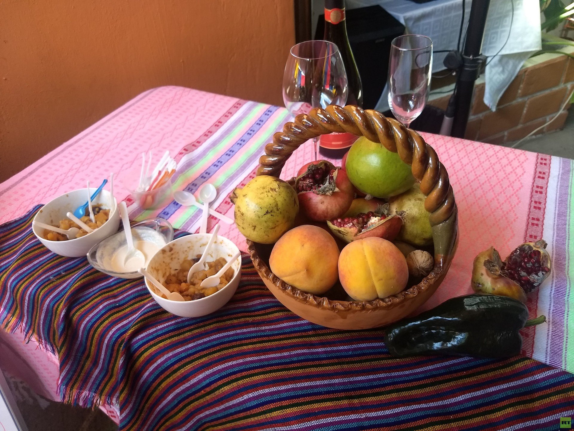 "Se usa fruta de temporada que solo se da en Puebla: la manzana panochera. También lleva el durazno criollo, las peras lecheras, las granadas y, lo más importante, la nuez de castilla para hacer la salsa o la nogada, como se le conoce", explica un guía del Museo de Arte Religioso de Santa Mónica en la capital del estado, dependiente del Instituto Nacional de Antropología e Historia (INAH).