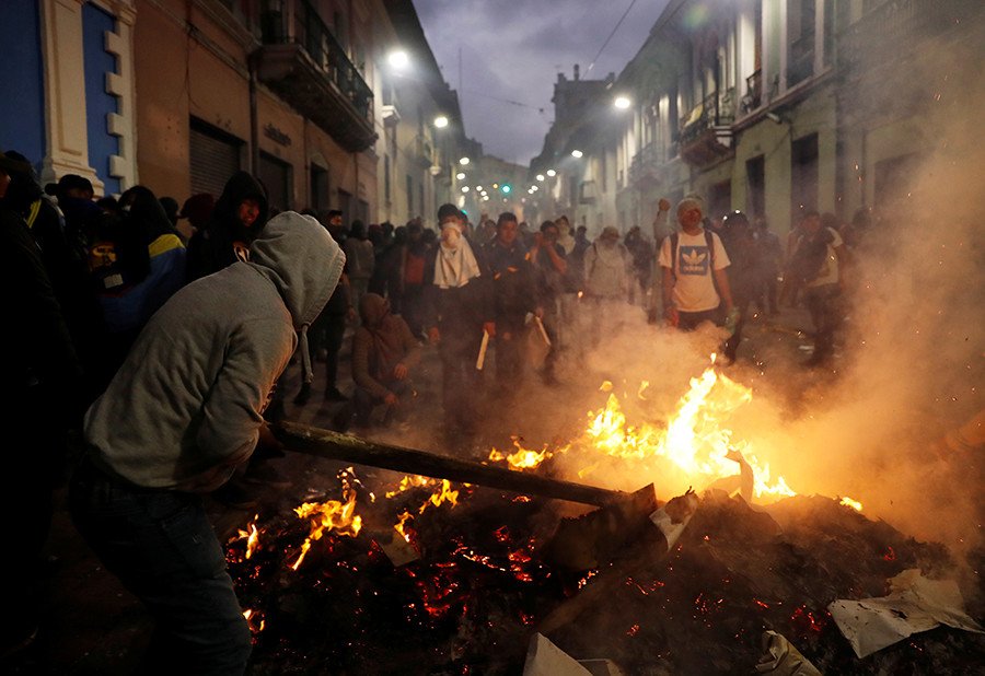 "¡Fuera Moreno con tus ratas!"Indígenas protestan contra el paquete económico de Lenín Moreno. La CONAIE ha convocado para este 9 de octubre a una huelga general con concentración en la capital del país pic.twitter.com/694R89DiwT