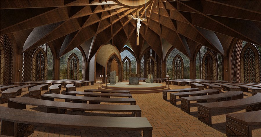 "Nos dimos cuenta que hay una gran similitud con la tradición cristiana. En el sentido de igualdad y la cuestión del círculo. Un punto central donde todo vuelve y que también es típico del cristianismo, donde Cristo está en el centro de todo. Cogimos elementos del cristianismo y de los yanomami y los congregamos en una sola edificación", relata el arquitecto.