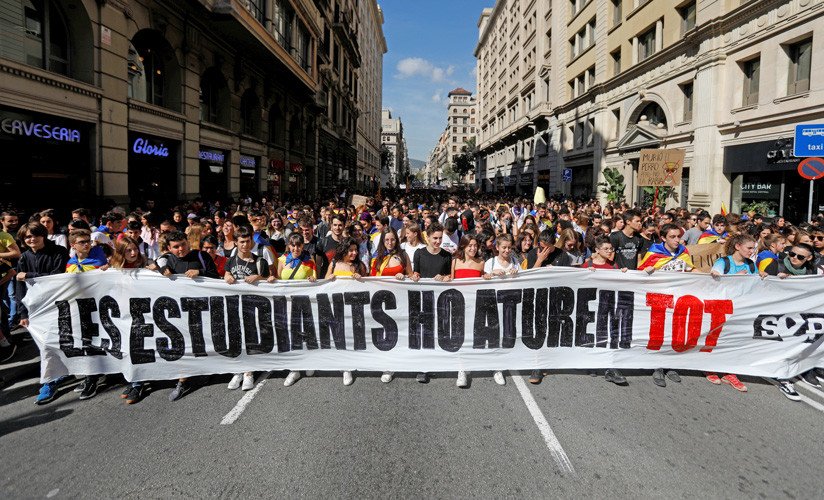 El jueves comenzó con una manifestación de los estudiantes que recorrió las calles del centro de Barcelona. Alrededor de 25.000 jóvenes protestaban principalmente por dos motivos: en primer lugar, para mostrar su rechazo a la condena de los líderes independentistas; y en segundo lugar, para pedir la dimisión del Gobierno catalán en su conjunto por haber reprimido las manifestaciones con "una brutalidad generalizada hacia manifestantes y periodistas".