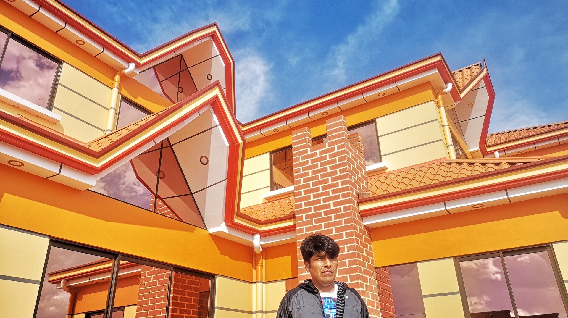 Y es en medio de esta infinidad de casas de ladrillo del Alto que aparecen unas construcciones especialmente coloridas de formas geográficas y firma de autor. Se conocen como 'cholets', un juego de palabras entre 'chola' y 'chalets'. Al autor de estas obras, el arquitecto Freddy Mamani, el término no le encanta. "Es que 'cholo' a veces puede utilizarse de manera ofensiva. Pero está bien, ya acepté el término y entiendo que se lo dice en forma positiva", opina en diálogo con RT Mamani.