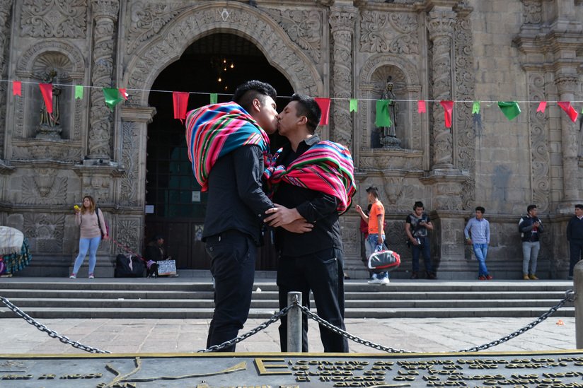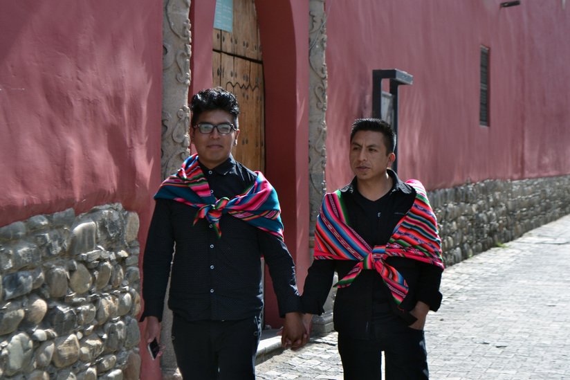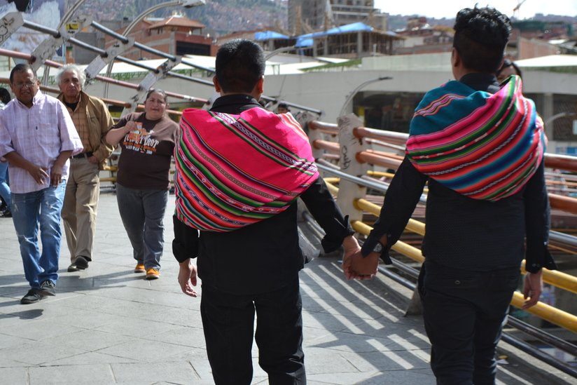 Edgar y Roberto se animaron a una performance. La tarde del 19 de julio de 2017 salieron a las calles de La Paz dándose la mano y con el aguayo en espalda. En un país en el que no está ni siquiera legalizado el matrimonio igualitario, la imagen era fuerte. Sin embargo, durante el día sintieron más indiferencia que otra cosa. Quizá algunos padres les tapaban los ojos a sus hijos, pero hubo relativamente calma. Hasta que subieron las fotos a las redes sociales: aquello sí se convirtió en una cloaca de insultos.