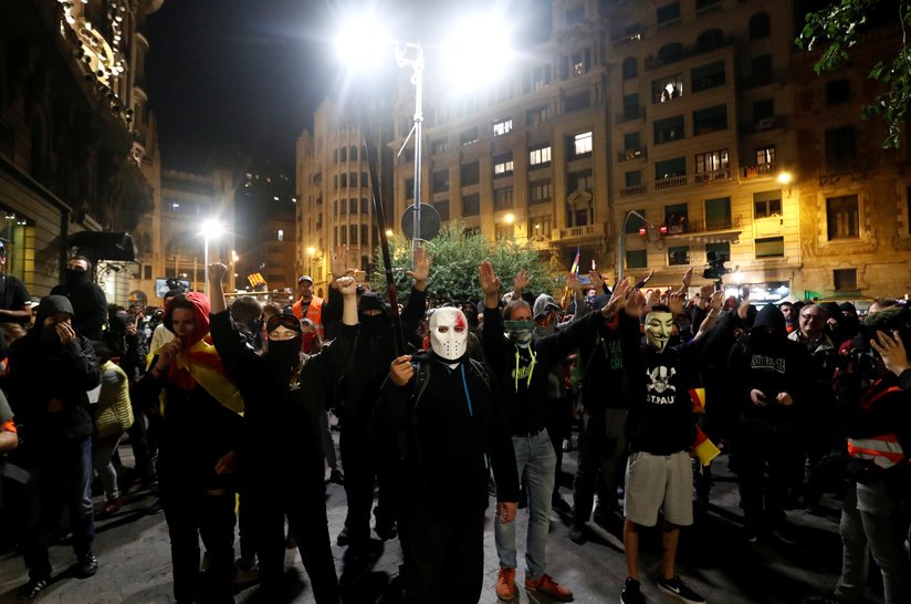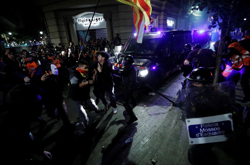 Los Mossos d’Esquadra, la Policía autonómica catalana, fueron desplegados luego de que los manifestanteslanzaran varios objetos tanto contra el edificio como contra los agentes.