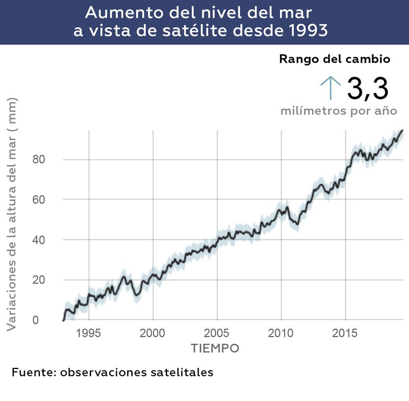 Ello significa que si el cambio climático continúa sin cesar, el drástico aumento del nivel del mar en el pasado podría ser una pequeña muestra de lo que está por venir. En particular, se prevé que la tasa de incremento del nivel del mar se acelere y para el año 2100 alcance los 70-100 centímetros, en función de la escala de emisión de los referidos gases.
