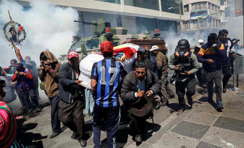 El jueves, la Policía lanzó gas lacrimógeno contra una multitudinaria protesta en La Paz, en la que se llevaban los féretros de las víctimas de Senkata, en El Alto, tras un operativo policial que el martes dejó ocho muertos.