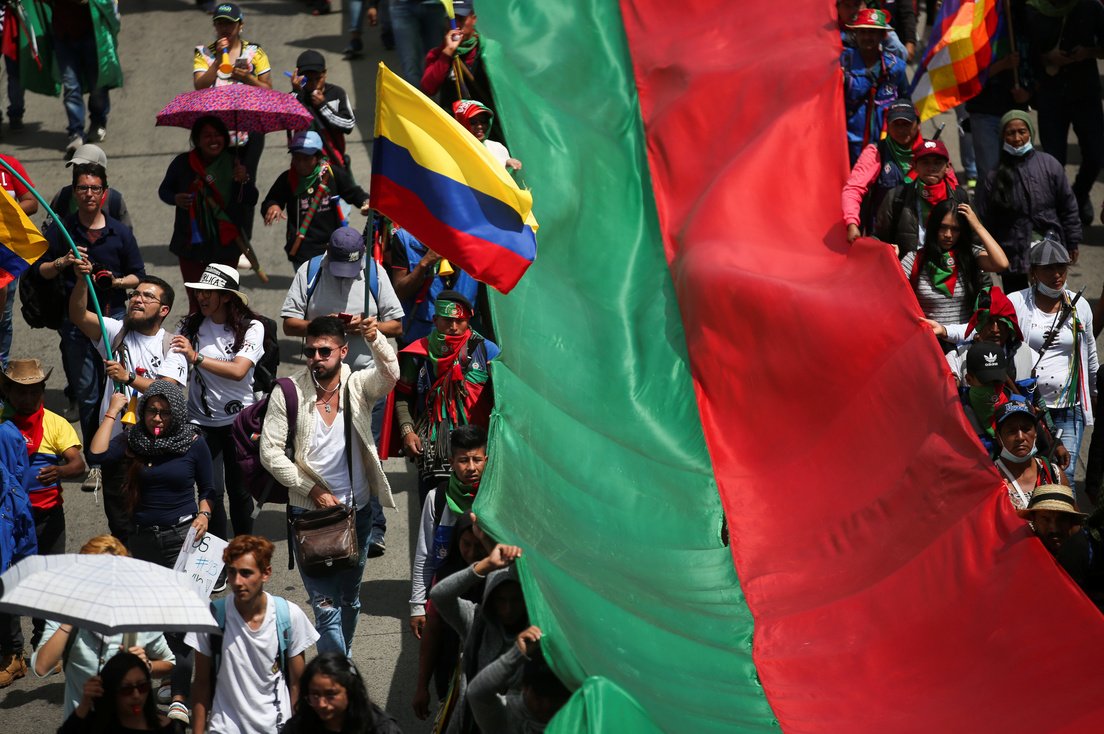 En Bogotá, la capital, indígenas, estudiantes y representantes de organizaciones sociales se movilizaron hasta la emblemática Plaza Bolívar. La Policía aseguró que en este punto había 14.500 personas protestando. Sin embargo, los medios locales señalan que la cifra parece ser mayor "y aún faltan dos movilizaciones por llegar".