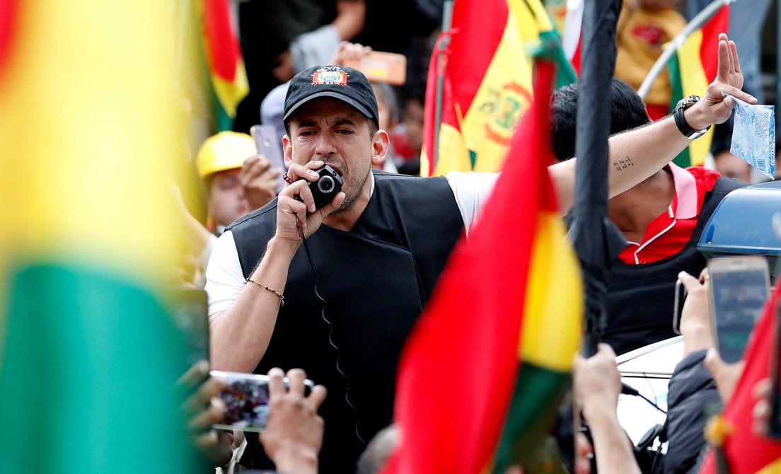 Camacho, un ferviente practicante católico, hablaba en su intervención sobre "el odio del tirano", con referencia a Morales, que "unió a los bolivianos", y aseguró que tras la autoproclamación de la legisladora conservadora Janine Áñez, una "nueva Bolivia" había surgido.