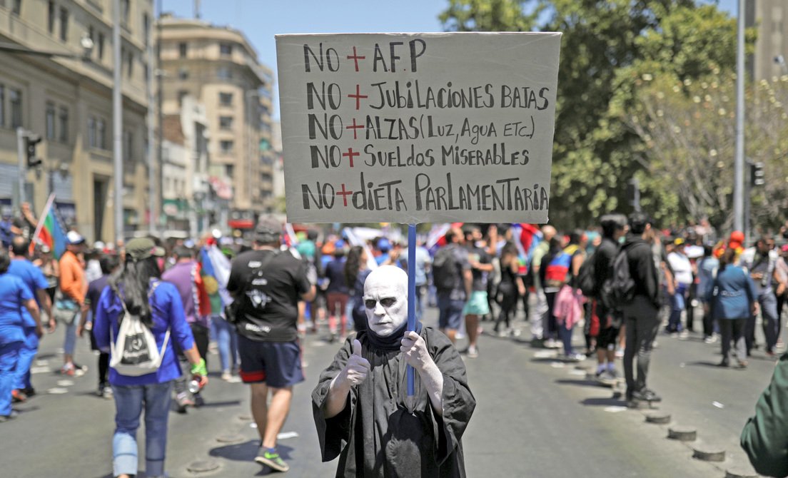 En esta materia, los manifestantes piden la eliminación de las Administradoras de Fondos de Pensiones (AFP), entes privados que manejan el sistema de jubilaciones.